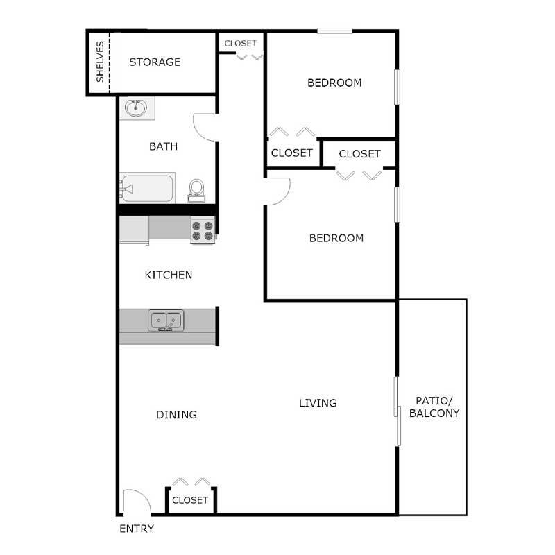 Apartment Model: Two Bedroom One Bathroom$8802 Bedroom, 1 Bath, 875 sq ftUnavailable![]()