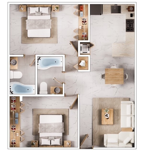 2 Beds, 2 Baths, 958 sq ftModel Gallery