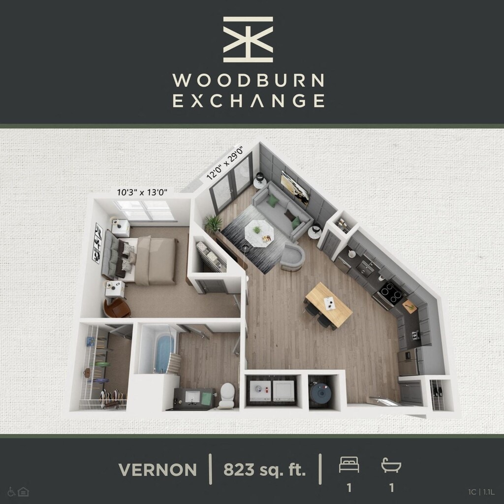 Studio to 2 Bedroom Apartments at WOODBURN EXCHANGE currently range from $1,435 to $2,385