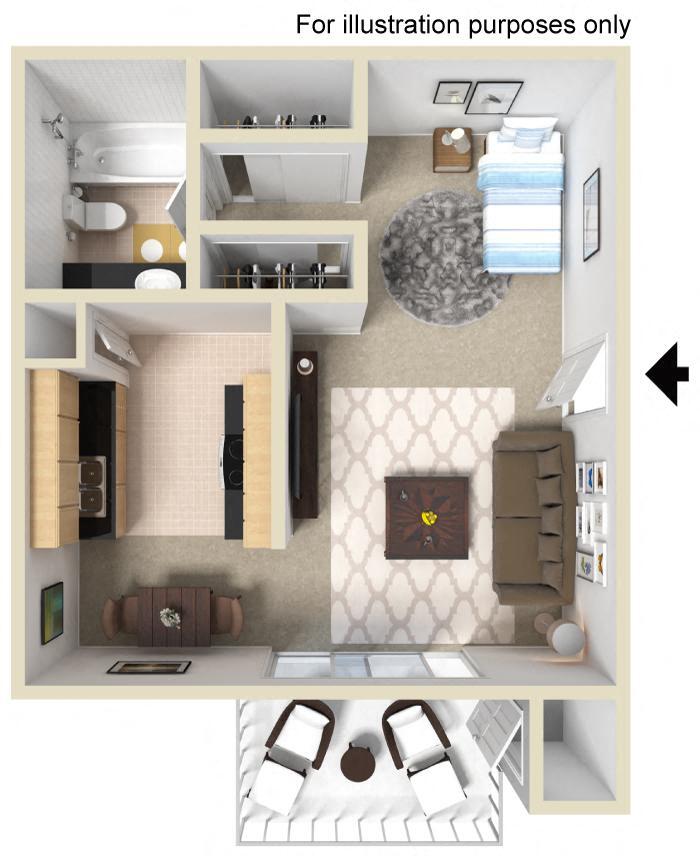 Studio, 1 Bath, 500 sq ftAvailable Nov 24Model Gallery