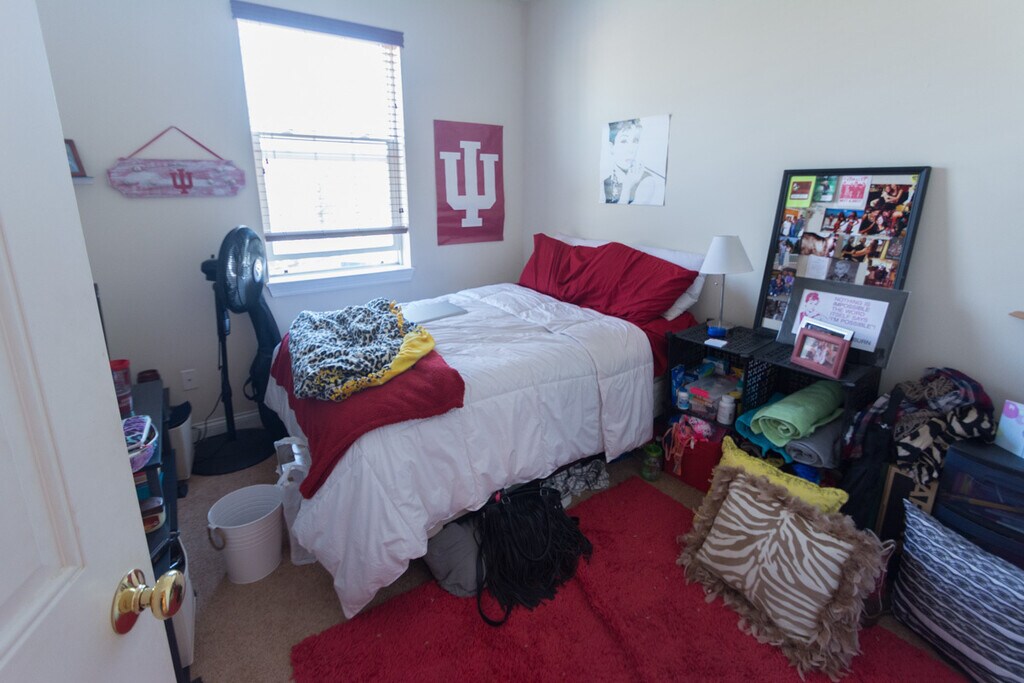 Open Floor plan with 3 beds and 2 baths. Kitchen with eat-at bar. The 3rd bedroom is larger and could accommodate 2 roommates for a total of 4 roommates in this 3 bedroom apartment. Huge windows overlook Miller-Showers park. Close to downtown, Indiana University and Memorial Stadium/Assembly Hall. Onsite parking and on the bus line!