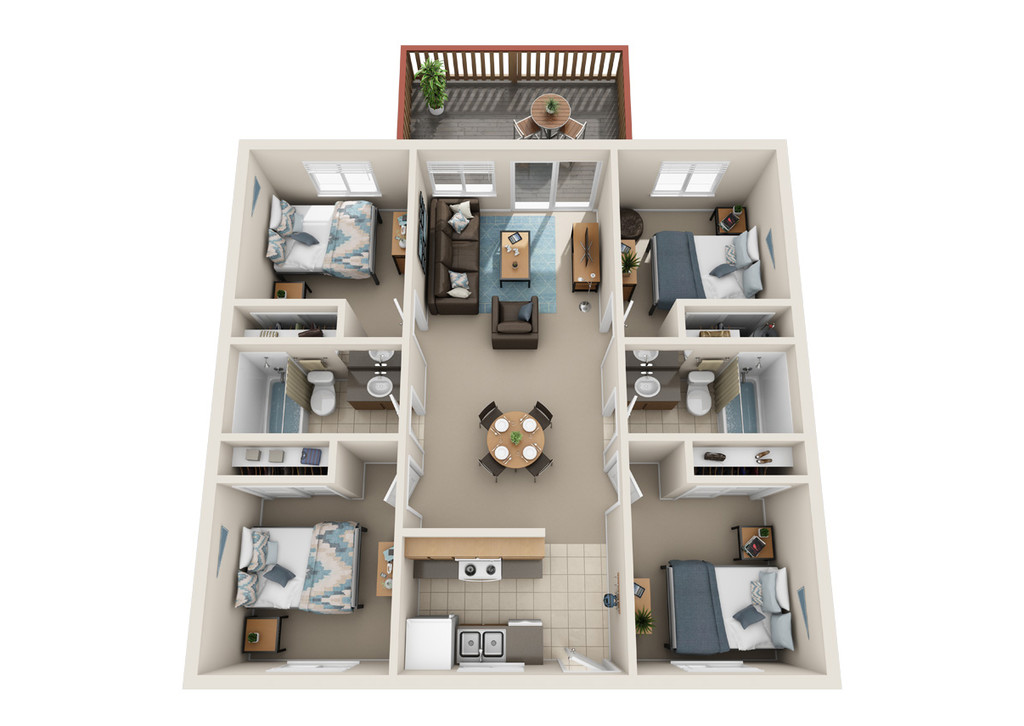 University Heights - 4x2 - Floorplan 1
