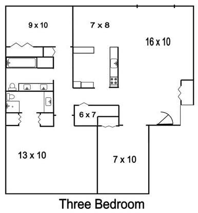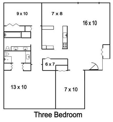 Apartment Model: 3 Bedroom 2 Bath3 Bedroom, 2 Bath, 1400 sq ftUnavailable![]() - 3 Bedroom 2 Bath - Floorplan 1