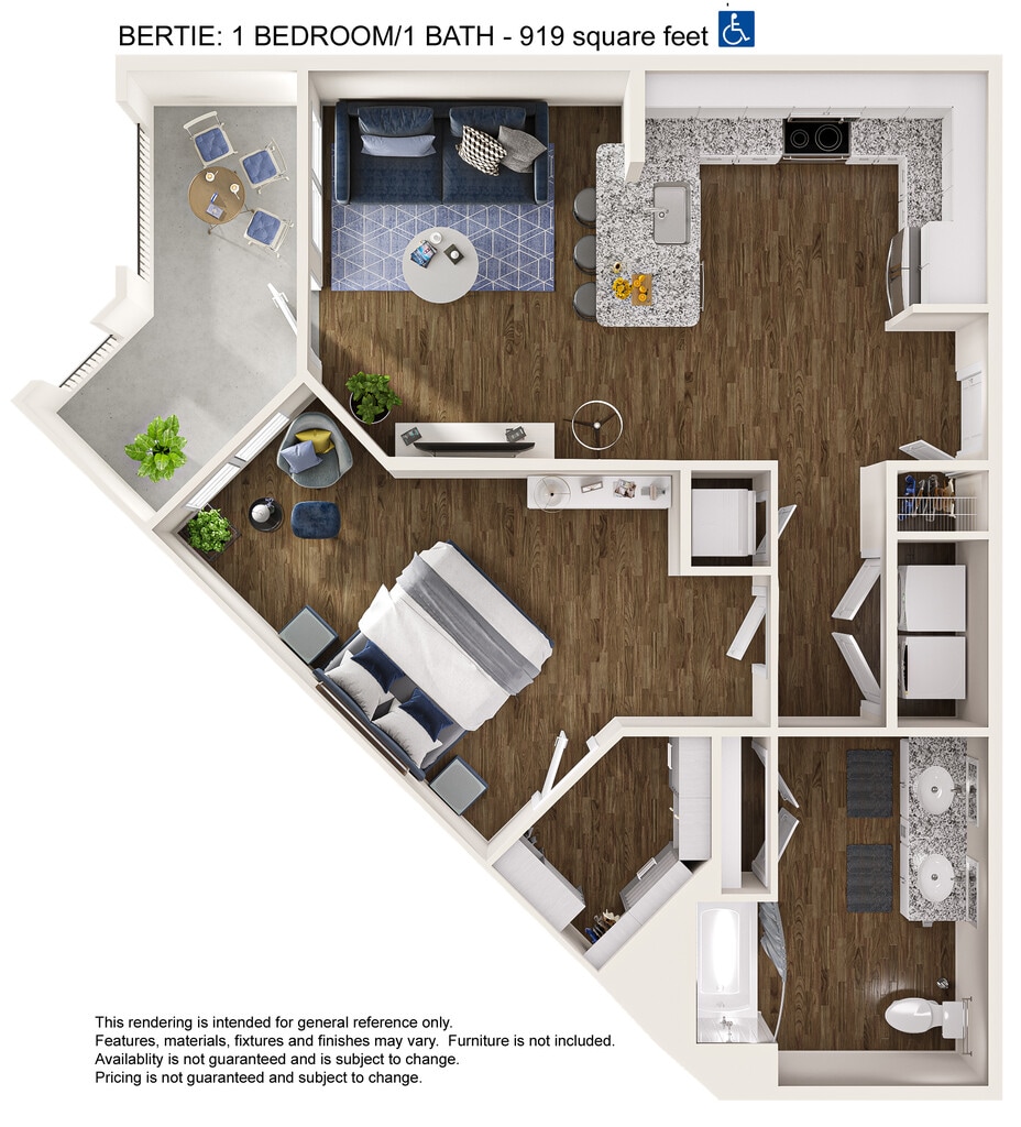 Apartment Unit: 407Apartment Model: **1x1 Handicap Bertie$1,5751 Bedroom, 1 Bath, 825 sq ftAvailable Now*1x1 Handicap Bertie