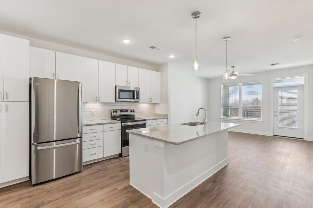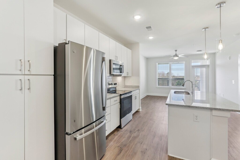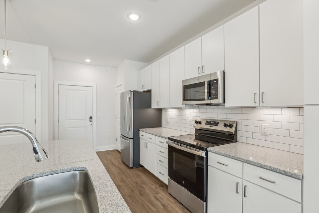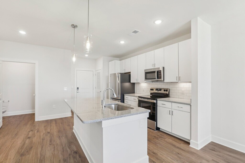 Wakefield Station Apartments in Raleigh, NC, offers modern studio, 1-, and 2-bedroom residences with luxury finishes and smart technology. Each unit features in-unit washer/dryer, keyless entry, and energy-efficient appliances. Community amenities include a resort-style pool, 24-hour fitness center, yoga room, pet spa, Amazon Hub lockers, and electric car charging stations. Conveniently located near Harris Teeter and UNC REX Healthcare Wakefield campus, Wakefield Station combines comfort and convenience in a vibrant North Raleigh setting. Prices start at $1200 per month. Additional fees may apply.