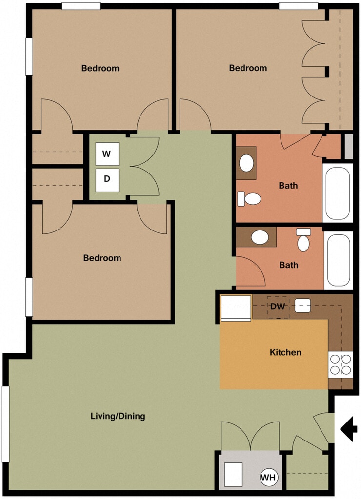 Apartment Model: 3 Bedroom$1,3963 Bedroom, 2 Bath, 1113 sq ftUnavailable![]()