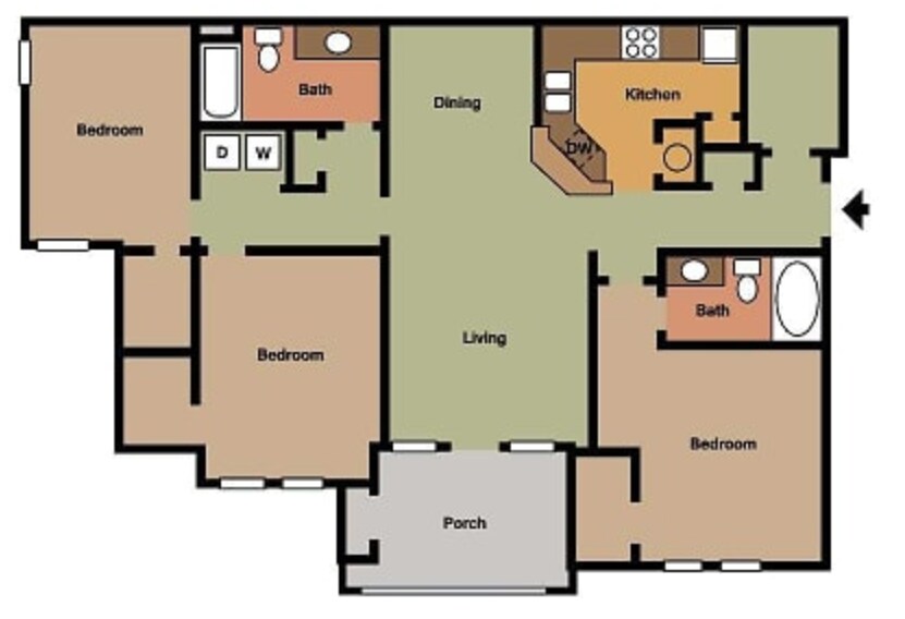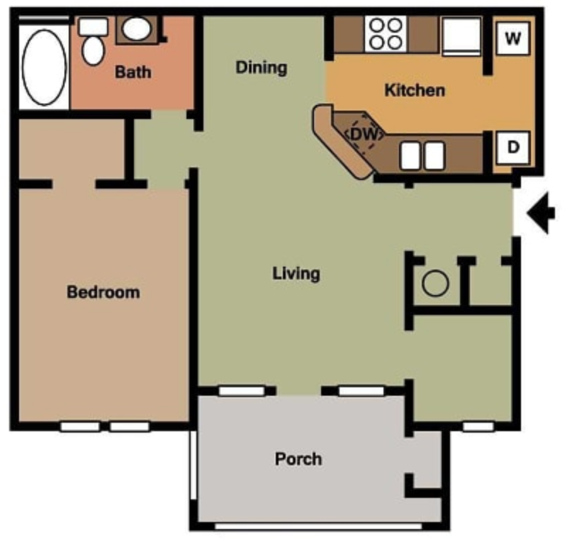 Apartment Model: A1G The Carriage House$1,3441 Bedroom, 1 Bath, 883 sq ftAvailable Now![]()