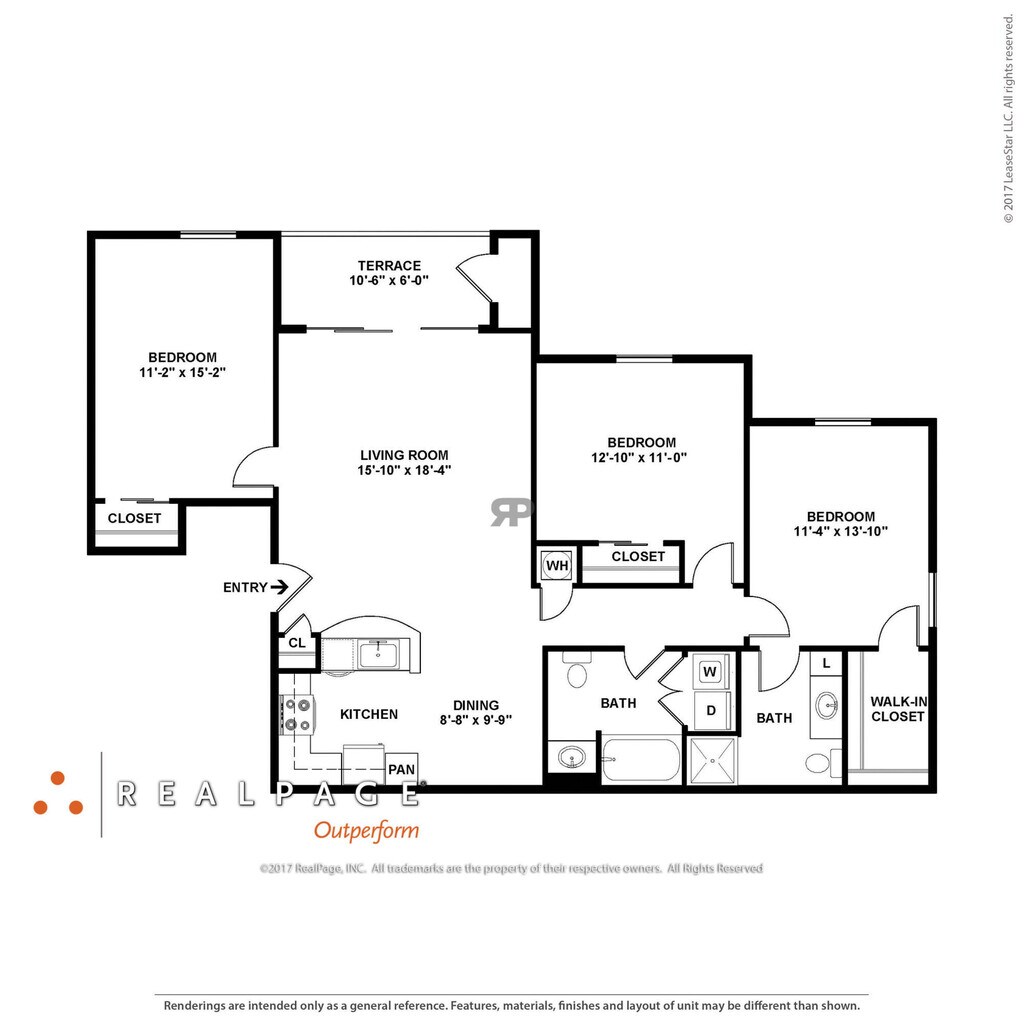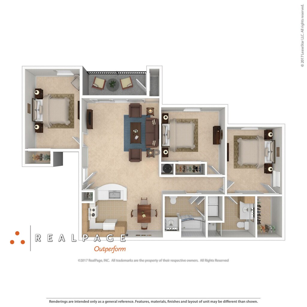 1 Bedroom to 3 Bedroom Apartments at Walden Creek currently range from $1,159 to $1,749