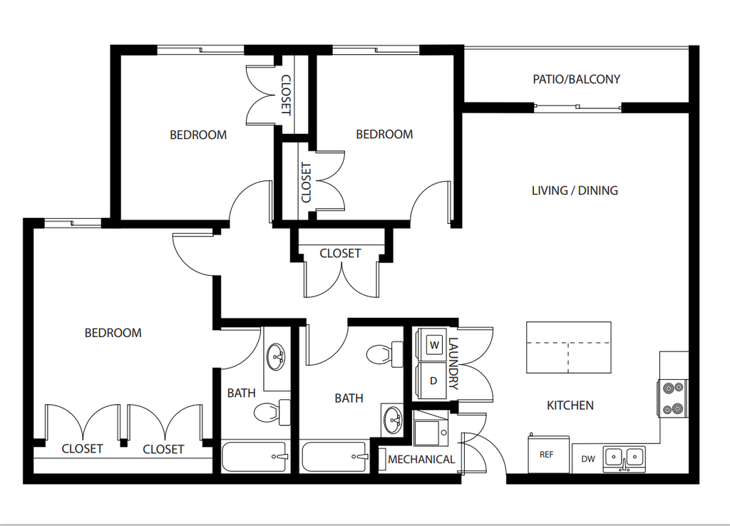 Apartment Model: 3 bedroom 2 bathFrom $1,7493 Bedroom, 2 Bath, 1308 sq ftAvailable Now![]()