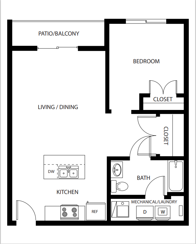 1 bedroom 1 bath - Floorplan 1 2 Bedrooms