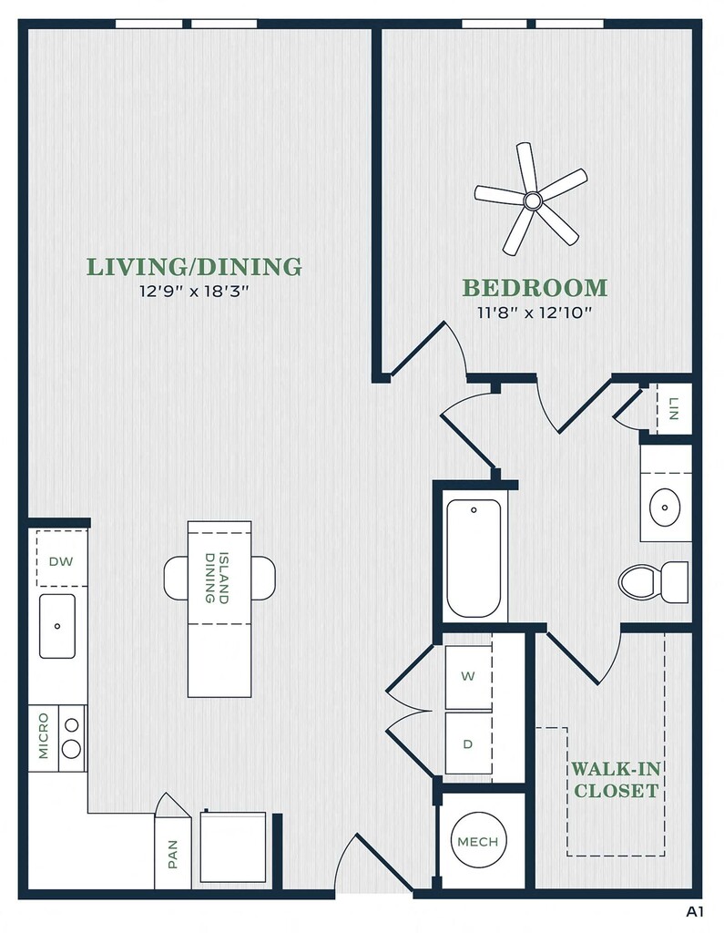 Apartment Model: A1-SFrom $1,2501 Bedroom, 1 Bath, 804 sq ftAvailable Now![]()