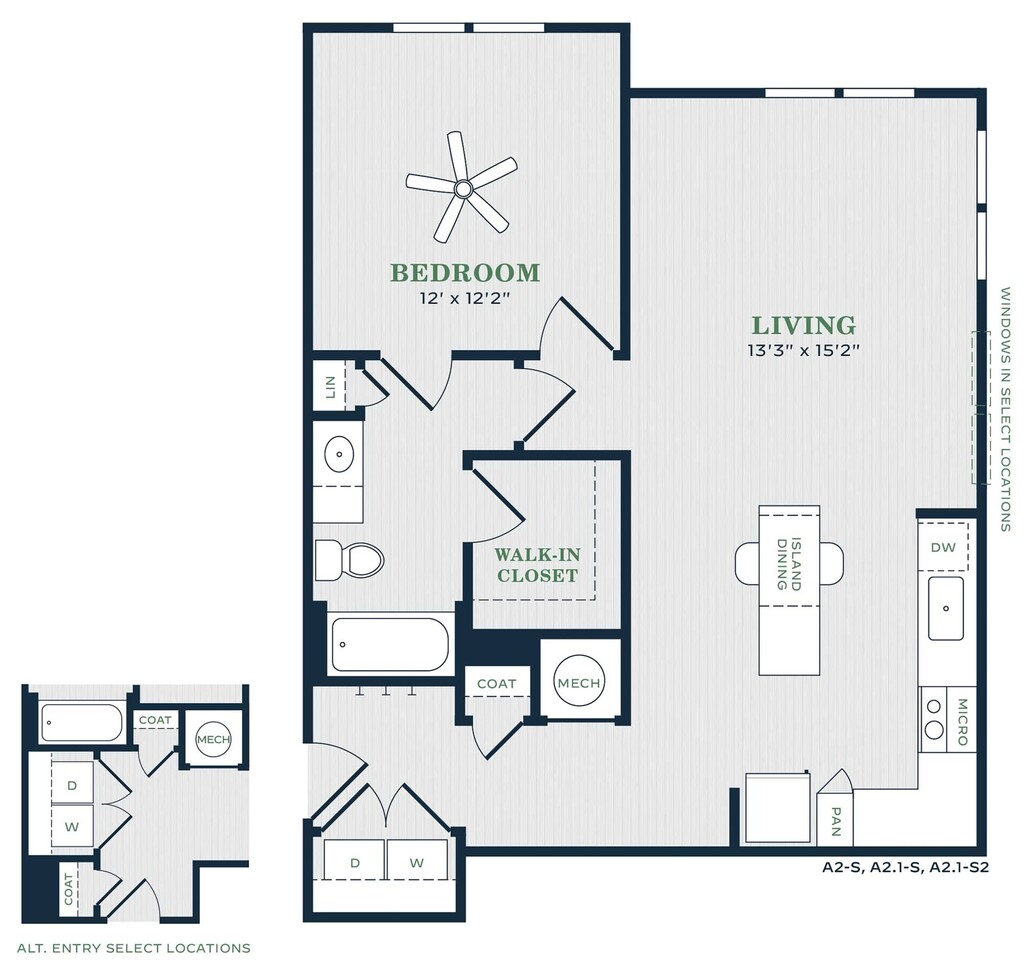 Apartment Model: A2From $1,2631 Bedroom, 1 Bath, 845 sq ftAvailable NowFloorplans3D Tours![]()