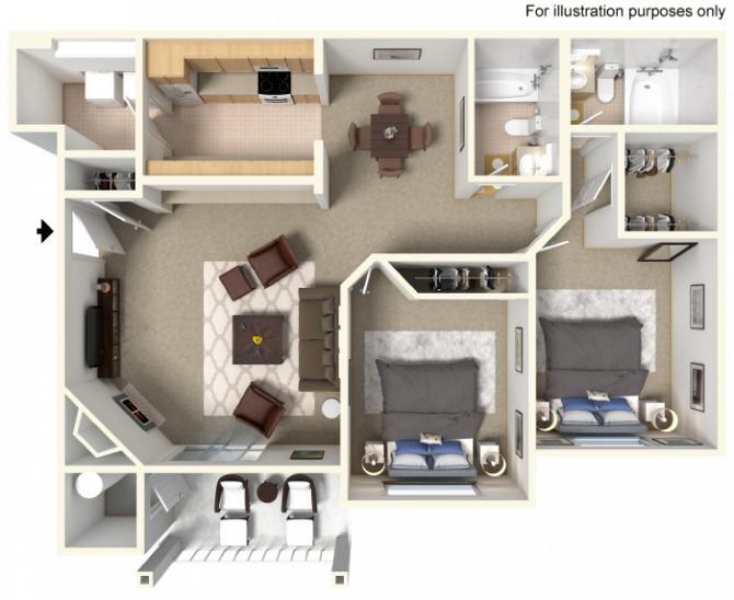 2 Beds, 2 Baths, 1012 sq ftAvailable NowModel Gallery