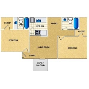 B2 - 2 Bed/2 Bath - Floorplan 1 Apartment Unit: 4101Apartment Model: B2 - 2 Bed/2 BathFrom $1,1502 Bedroom, 2 Bath, 880 sq ftAvailable NowB2 - 2 Bed/2 Bath WD