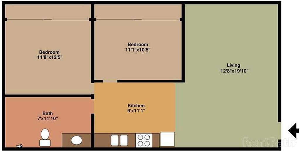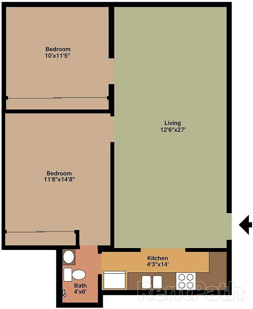Walnut: 2 Bed 1 Bath - Upgraded - Floorplan 11 Walnut: 2 Bed 1 Bath - Premium