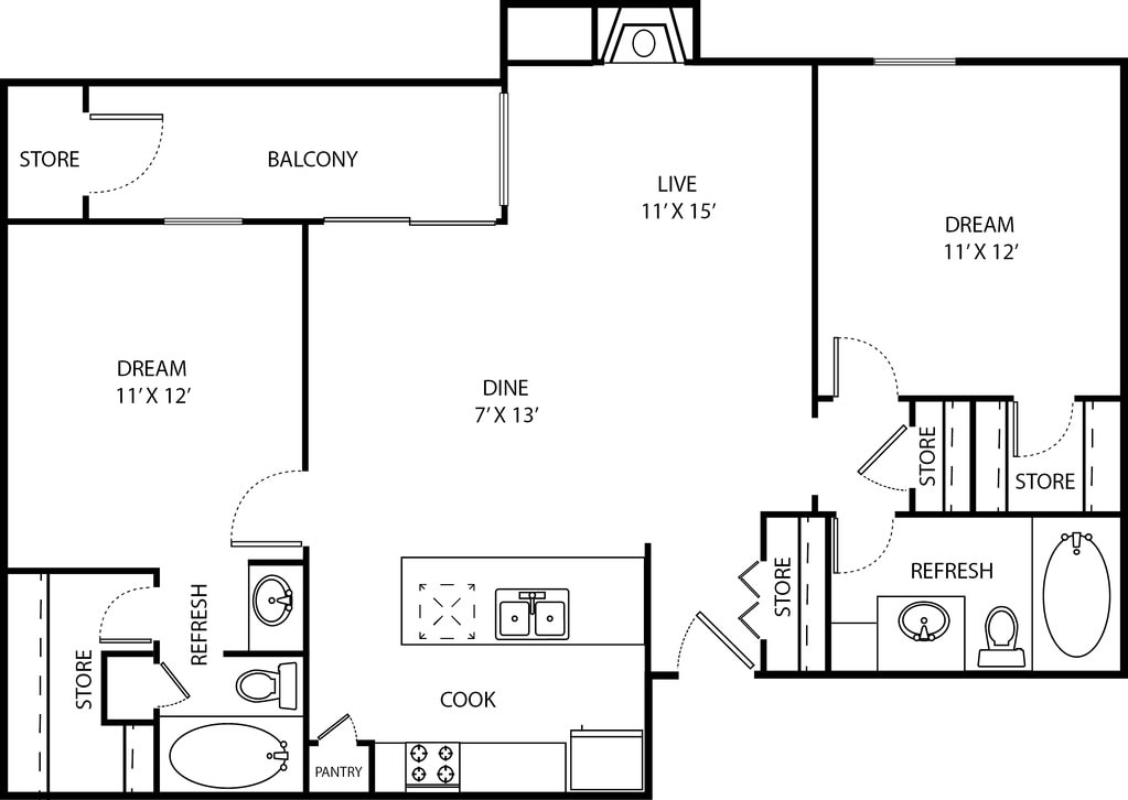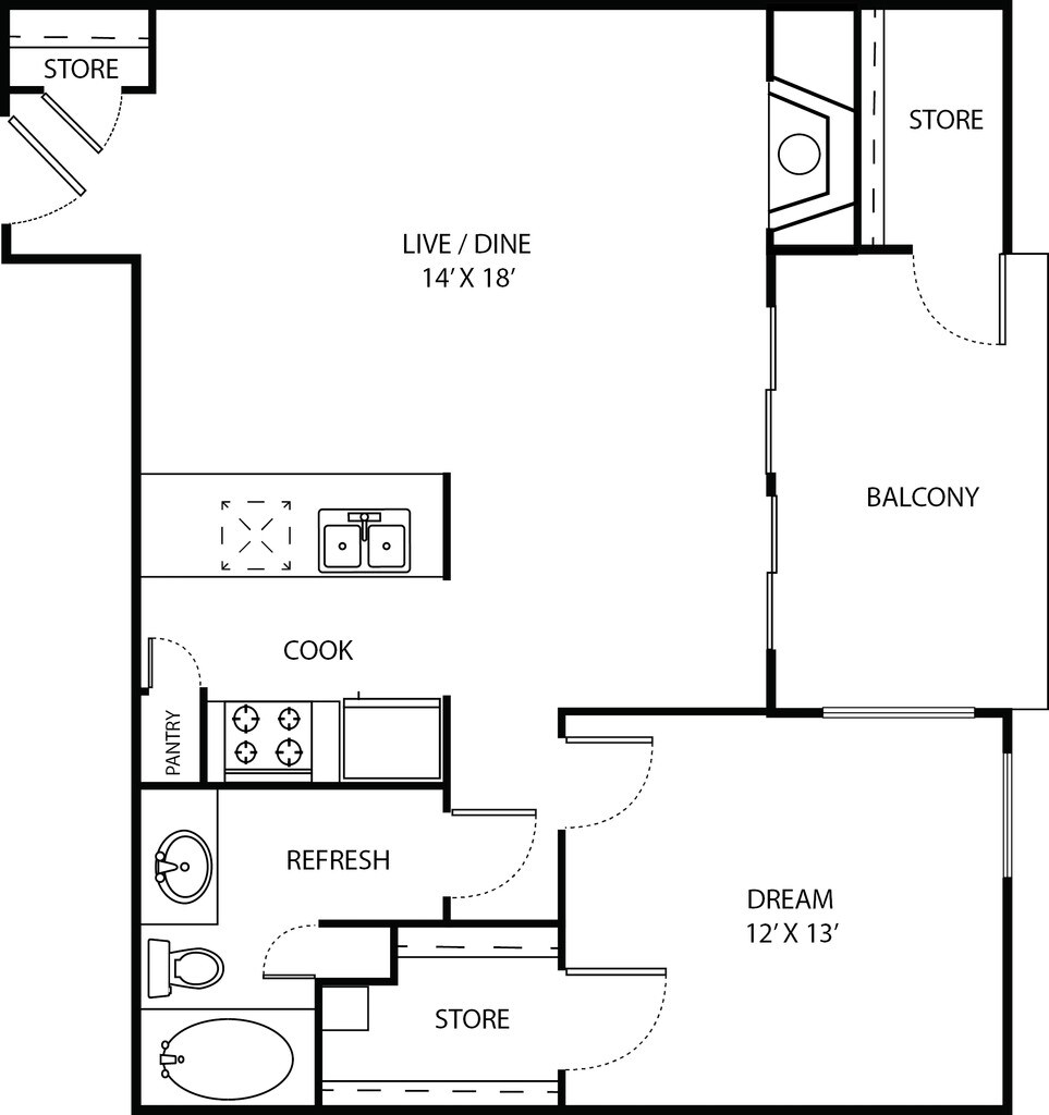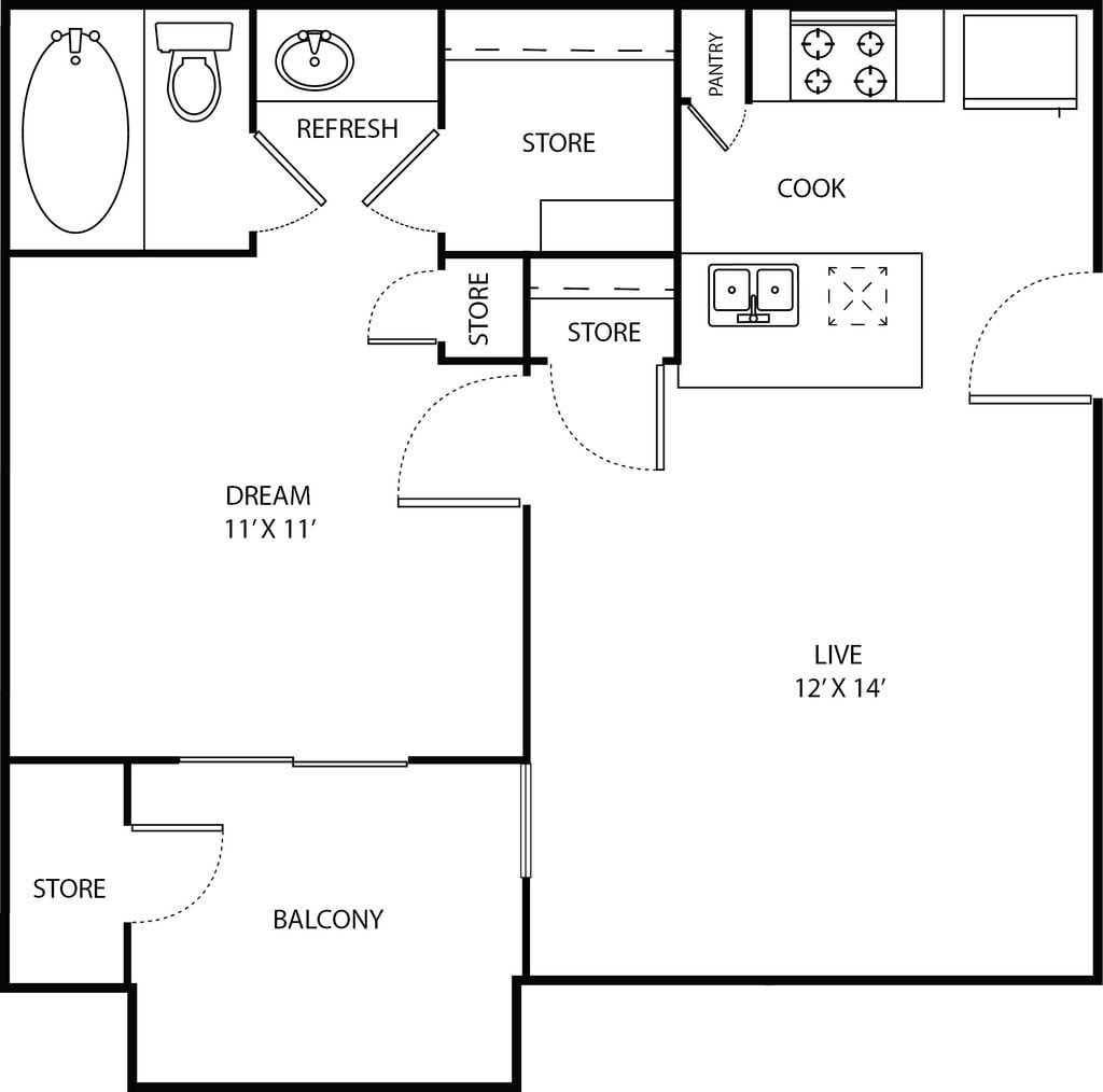 1 Bed, 1 Bath, 665 sq ftAvailable NowModel Gallery