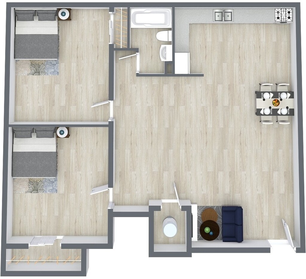 2 Beds, 1 Bath, 825 sq ftModel Gallery