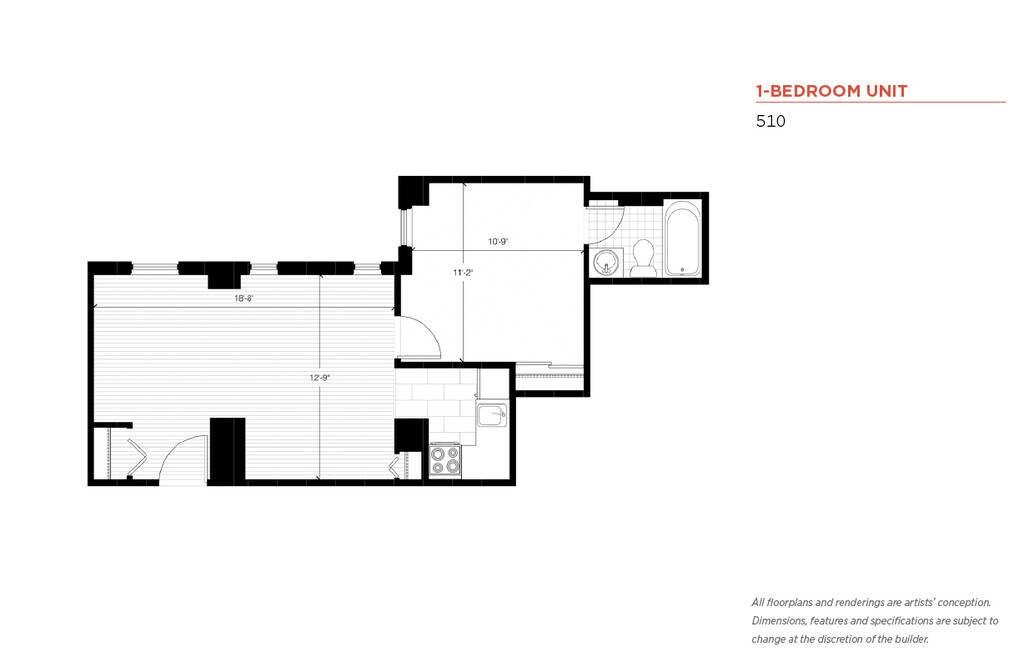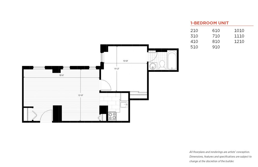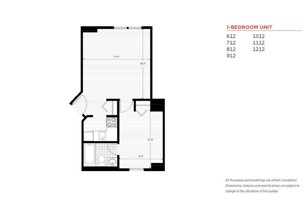 1 Bed, 1 Bath, 350-400 sq ftModel Gallery