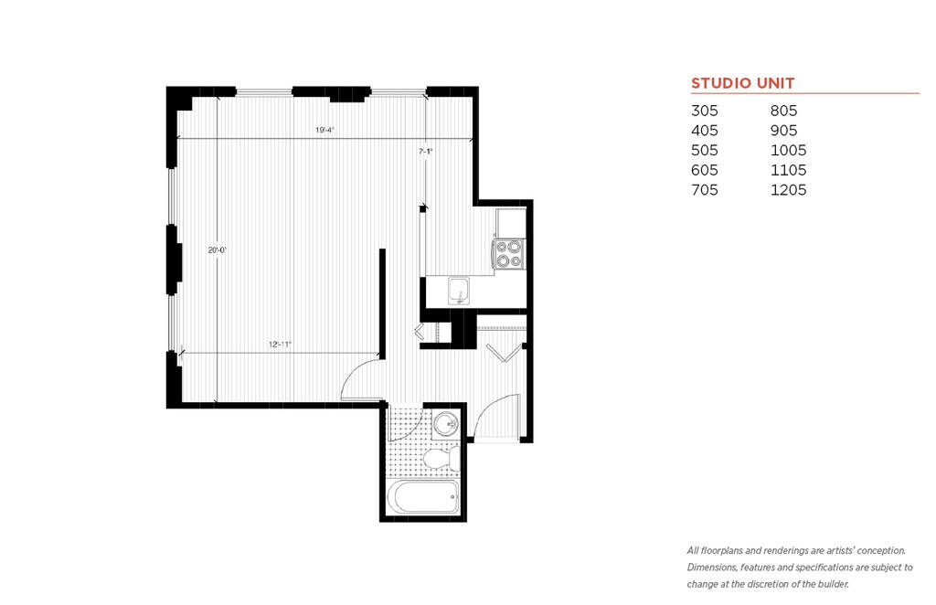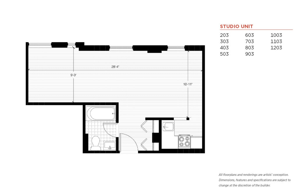Studio, 1 Bath, 270-350 sq ftModel Gallery