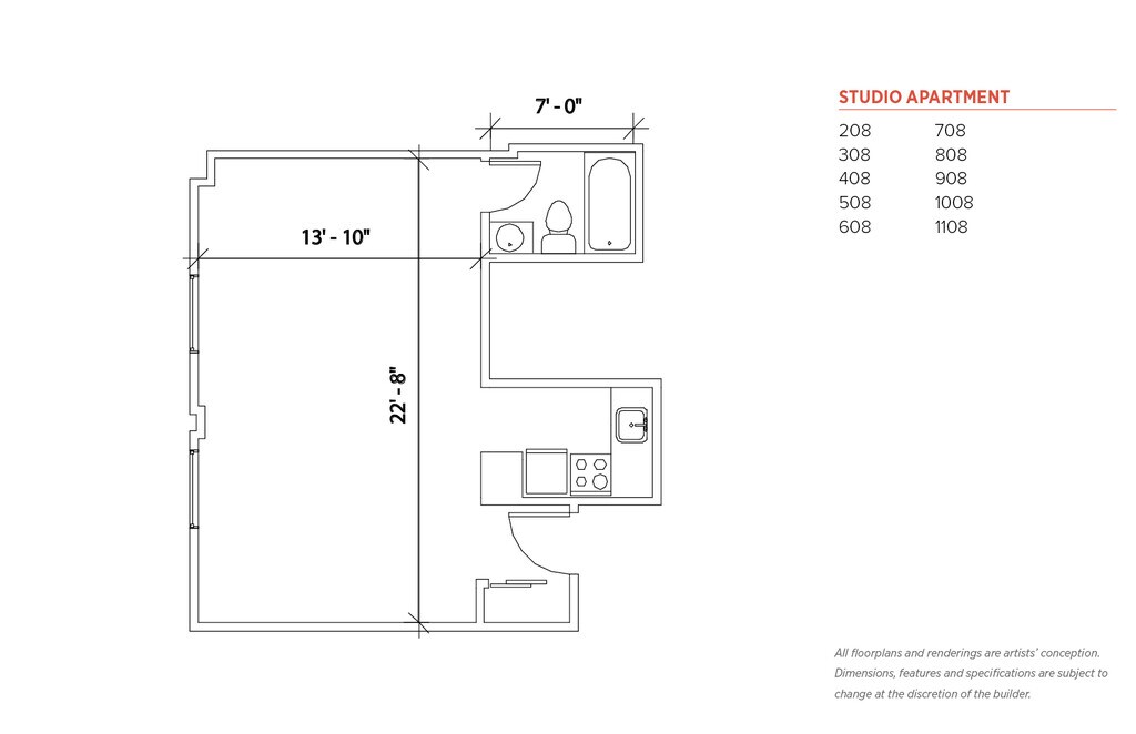 Apartment Model: StudioStudio, 1 Bath, 270-350 sq ftUnavailable![]()
