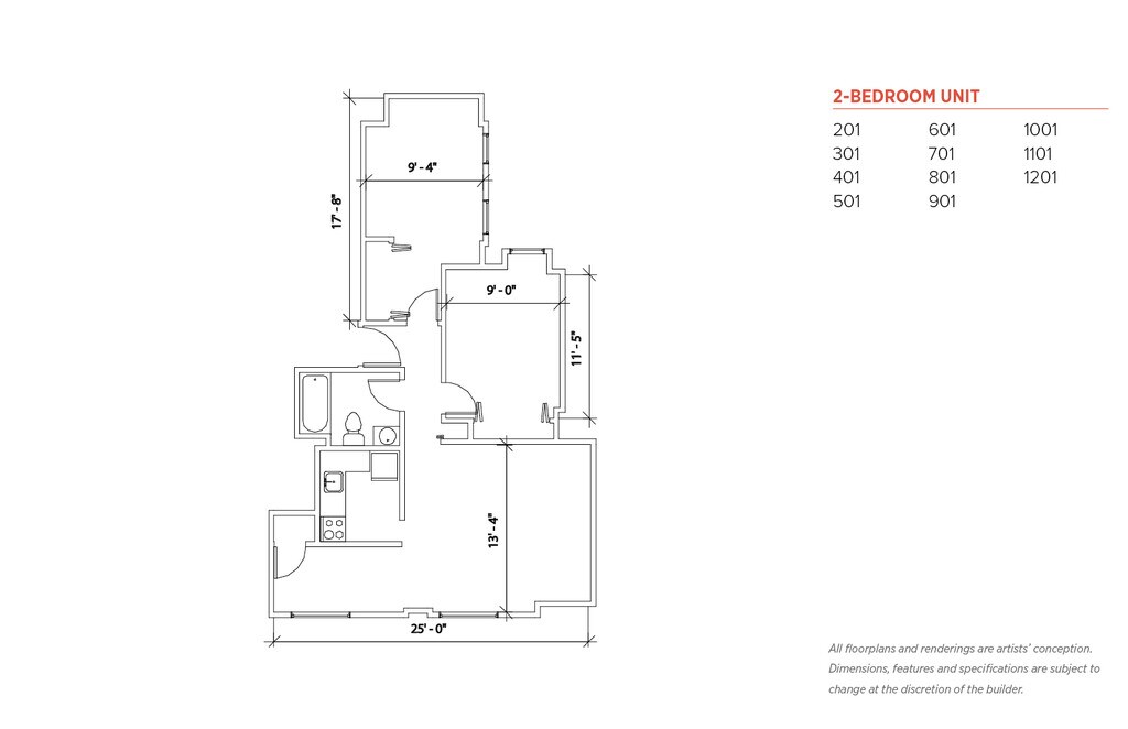 2 Beds, 1 Bath, 600 sq ftModel Gallery