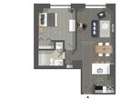 1 Bed, 1 Bath, 590 sq ftModel Gallery