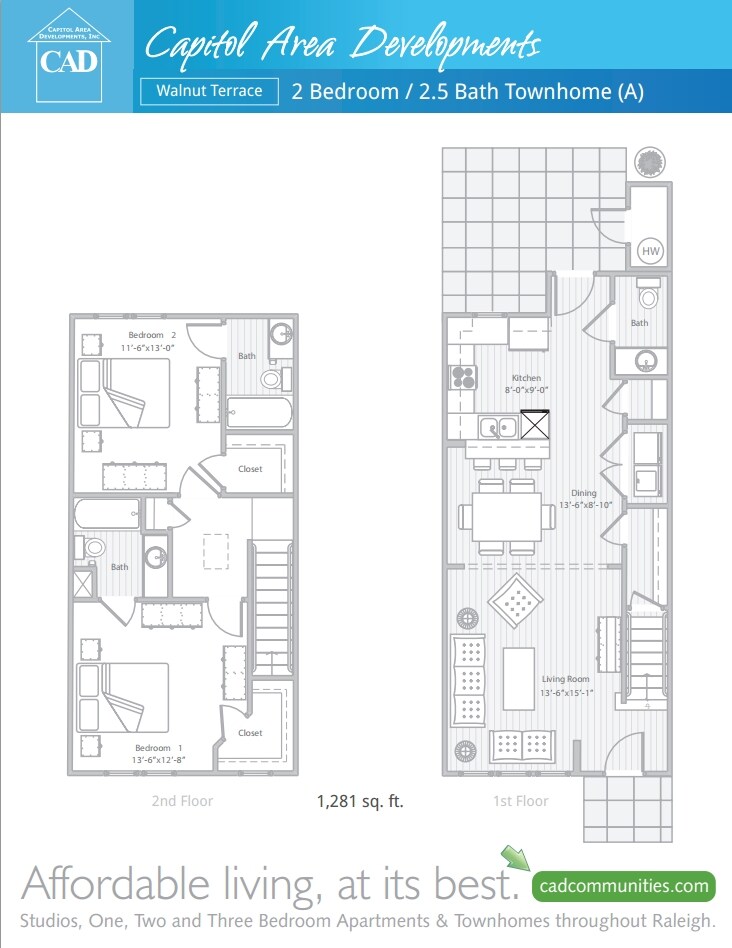 2 Beds, 2.5 Baths, 1281 sq ftAvailability Details