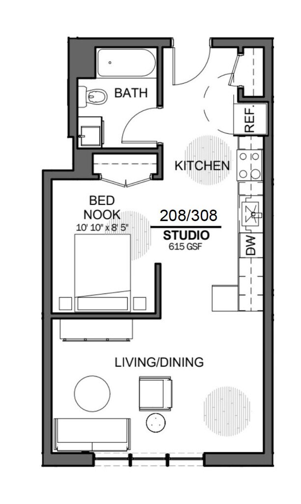 Studio, 1 Bath, 615 sq ftPlus FeesAvailable NowAvailability Details