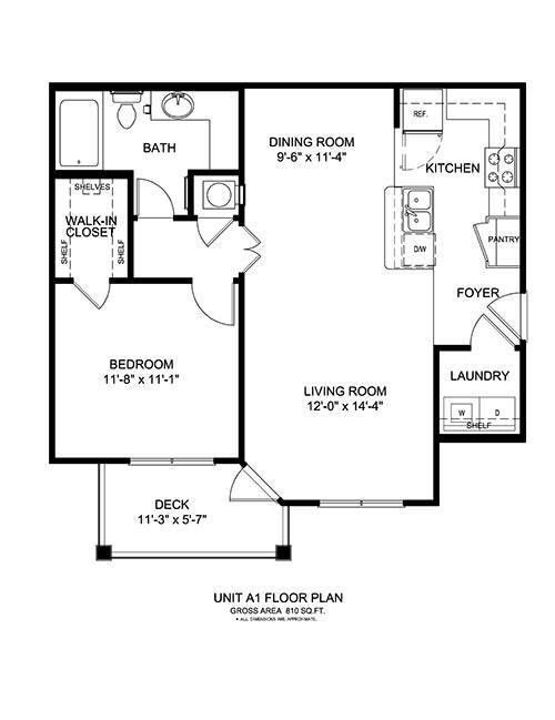 A1 1 Bed/1 Bath - Floorplan 1 ![]()