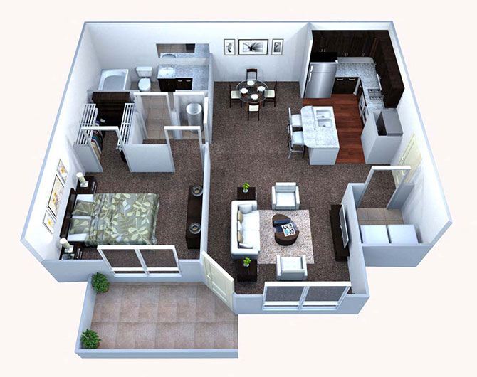 A2 1 Bed/1 Bath - Floorplan 2 A3 1 Bed/1 Bath