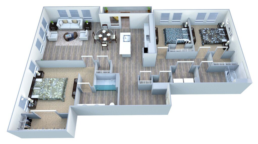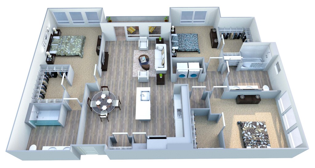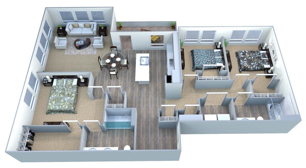 3 Beds, 2 Baths, 1449-1544 sq ftAvailable NowLargest 3 BedroomThis is the largest 3 Bedroom at this PropertyModel Gallery