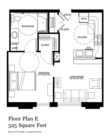 Apartment Model: E 1 Bed/1 Bath1 Bedroom, 1 Bath, 525 sq ftUnavailableE 1 Bed/1 Bath - Floorplan 1 B 1 Bath/1 Bed
