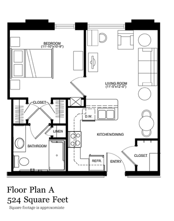 Apartment Model: A 1 Bed/1 Bath1 Bedroom, 1 Bath, 524 sq ftUnavailableA 1 Bed/1 Bath - Floorplan 1