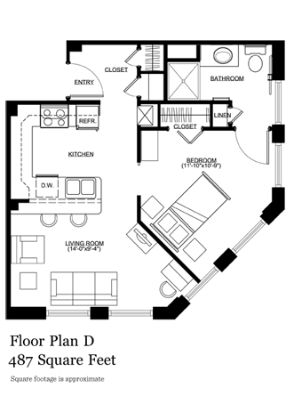 Apartment Model: D 1 Bed/1 Bath1 Bedroom, 1 Bath, 487 sq ftUnavailableD 1 Bed/1 Bath - Floorplan 1 C 1 Bed/1 Bath