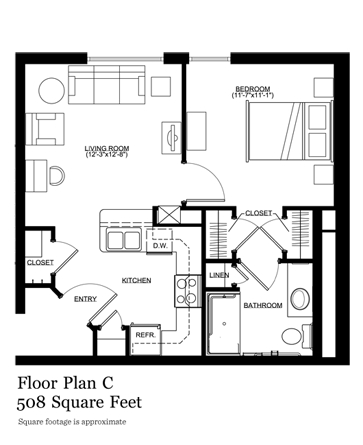 Apartment Model: C 1 Bed/1 Bath1 Bedroom, 1 Bath, 508 sq ftUnavailableC 1 Bed/1 Bath - Floorplan 1 E 1 Bed/1 Bath