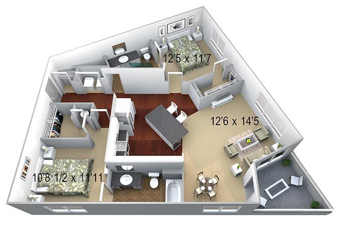 B5 2 Bed/2 Baths - Floorplan 1 B3 2 Bed/2 Baths