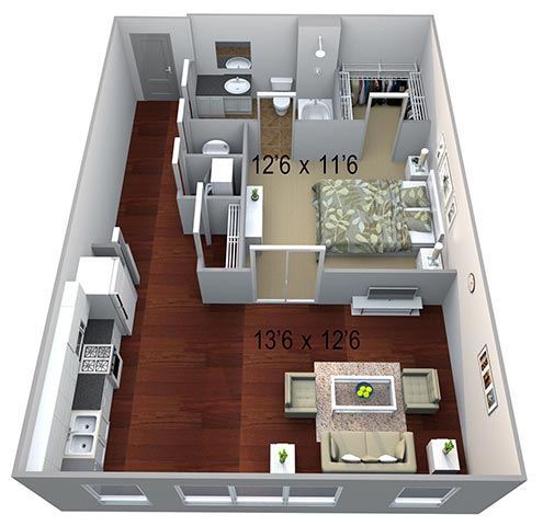 A3 1 Bed/1 Bath - Floorplan 1 A4 1 Bed/1 Bath