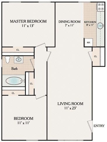 2 Bedroom 1 Bathroom - Floorplan 1 ![]()