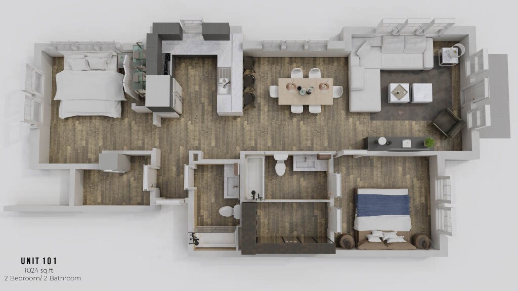 2 Beds, 2 Baths, 1024 sq ftAvailable NowModel Gallery