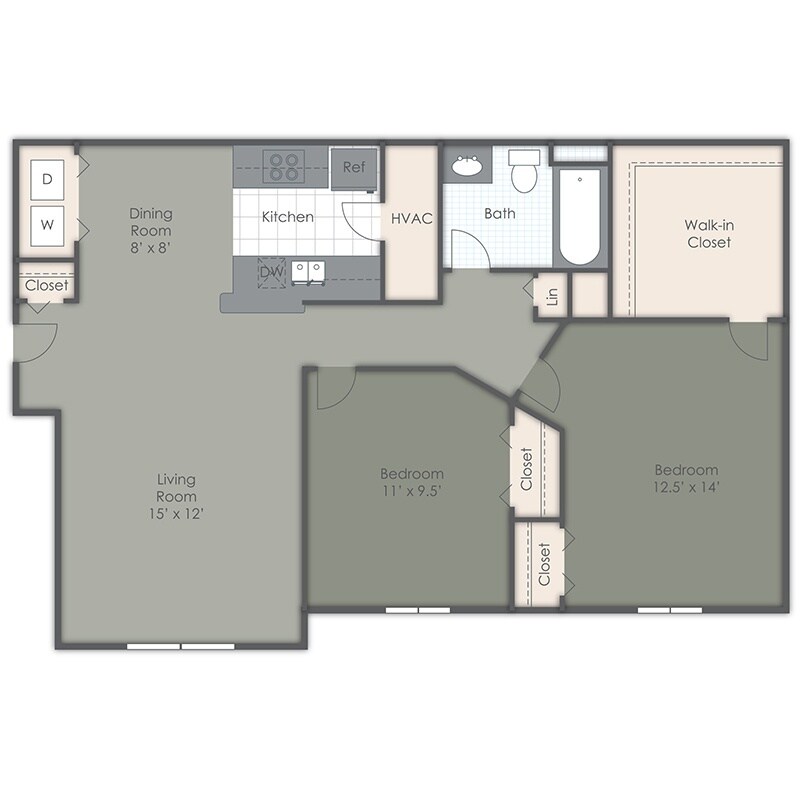 Apartment Model: Cp - Premium Two Bedroom, Two Bath$1,4502 Bedroom, 2 Bath, 933 sq ftAvailable Now![]()