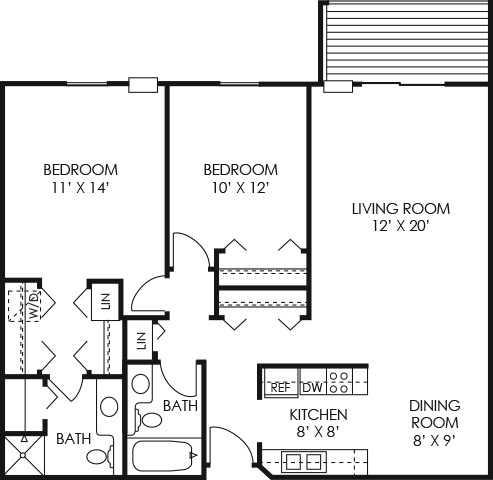 Apartment Model: 2DCall For Rates2 Bedroom, 1 Bath, 974-1001 sq ftUnavailable![]()
