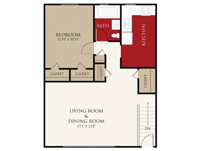 Two Bedroom/ One Bath - Floorplan 1 Two Bedroom Townhome