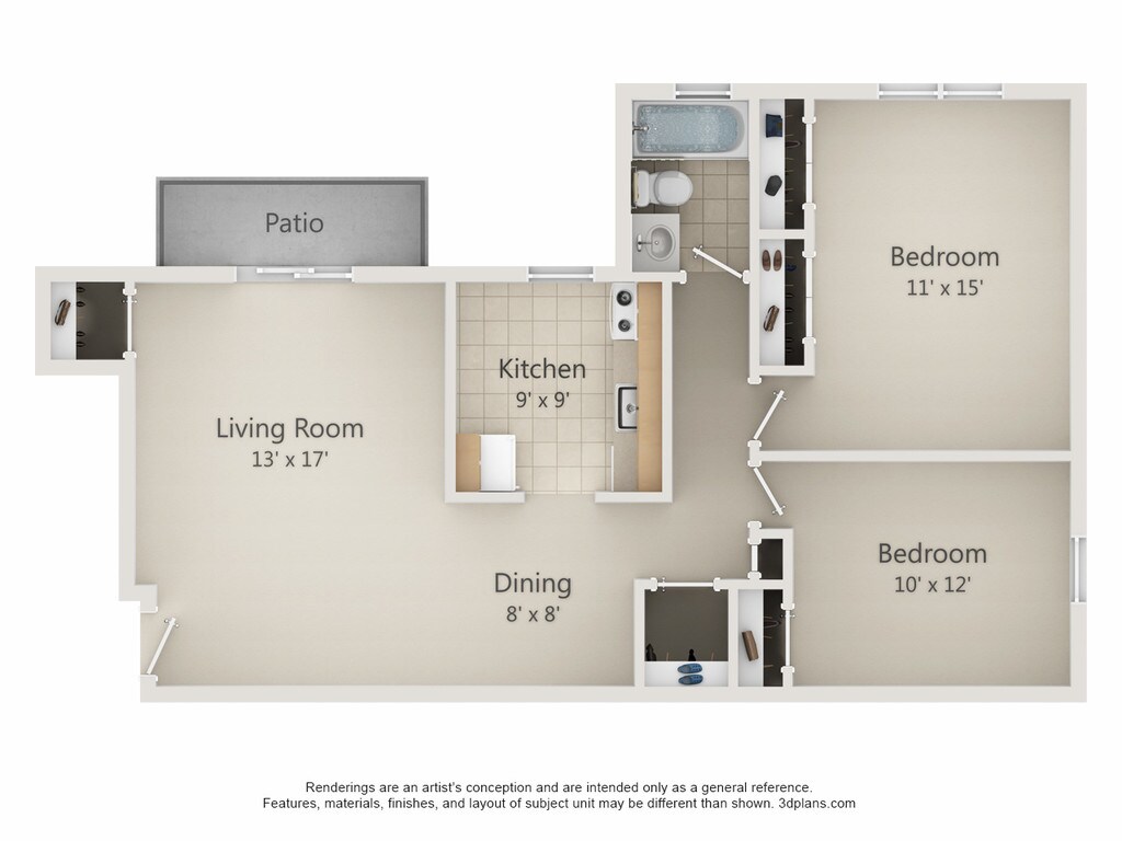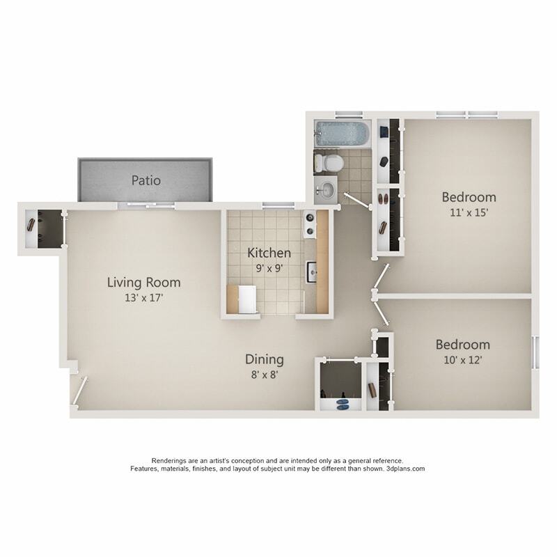 2 Beds, 1 Bath, 650 sq ftAvailable Dec 17Model Gallery
