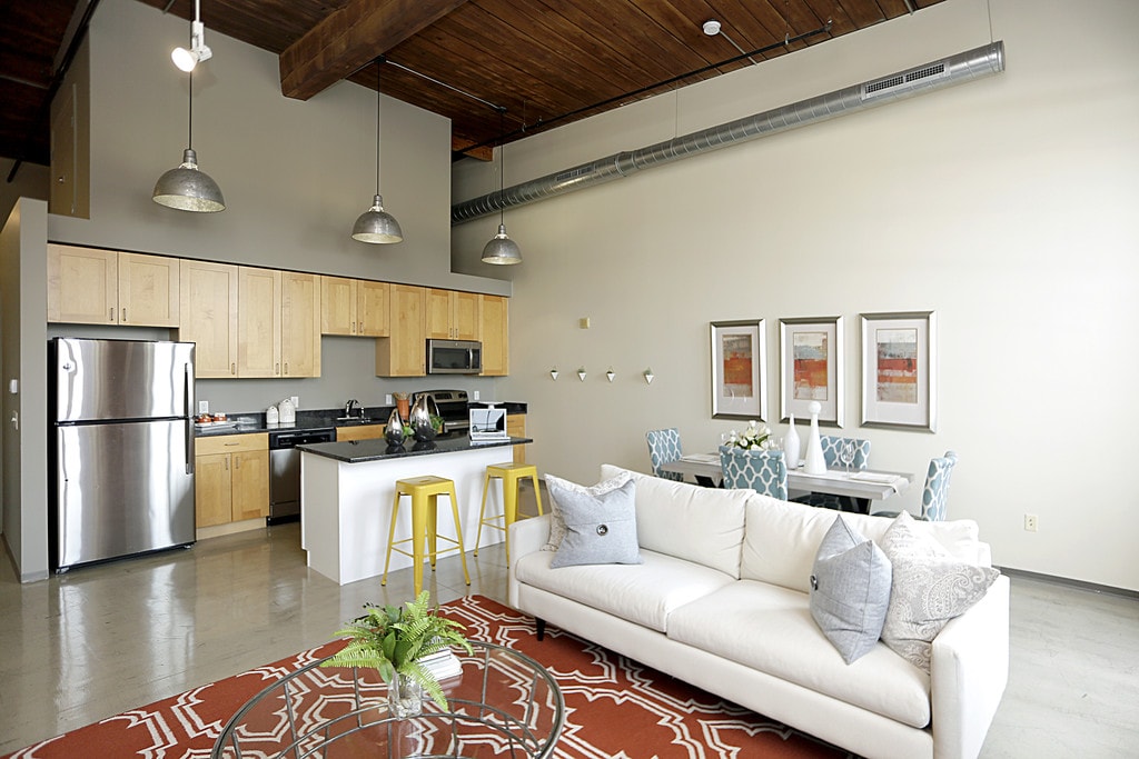 It may be historic, but it’s not your grandparent’s Washington Mills. Sure you’ll still find it in a history book, but today character of old is mixed with character of new. Where once woolens were woven, now sit stylish lofts that can accommodate you, your laptop and even your pet Spike. With tons of exposed brick, giant ceiling heights, and old growth wood beams, it has a history that is as big as the mill itself and a future that is bright and waiting to be written. Our studio, one and two bedroom lofts are designed for open flexible living and feature quality construction and stylish features. Enjoy the sun streaming through the oversized windows, entertain friends on the roof deck, grab a workout in the fitness room or meet your neighbors in the common lounge, complete with widescreen TV, billiards, wet bar and wifi access. Our units are ideally suited for living, working, lounging and making friends. And, you can even do your laundry in your own in-unit washer and dryer. So go ahead, make the space your own. Welcome to the neighborhood.