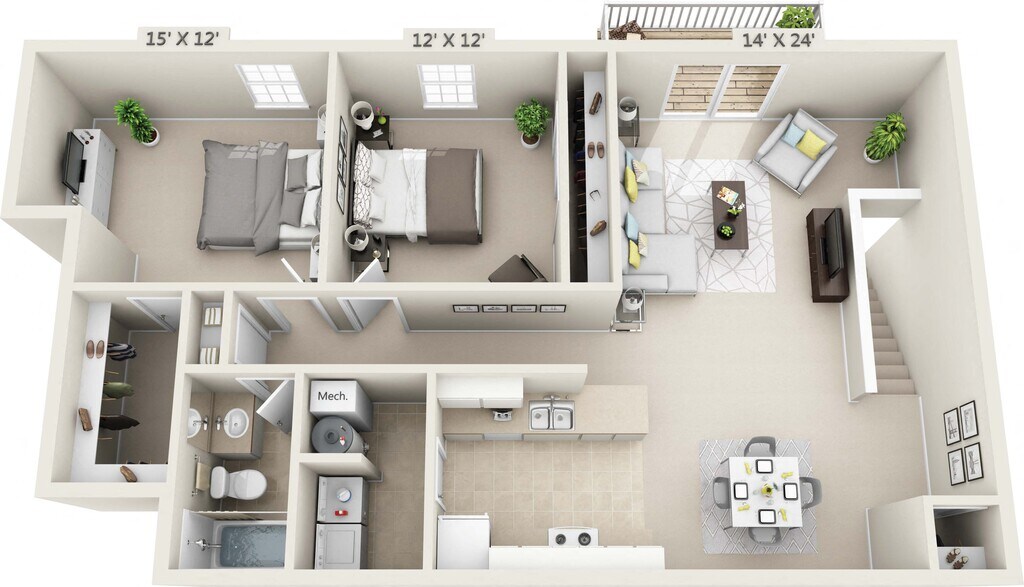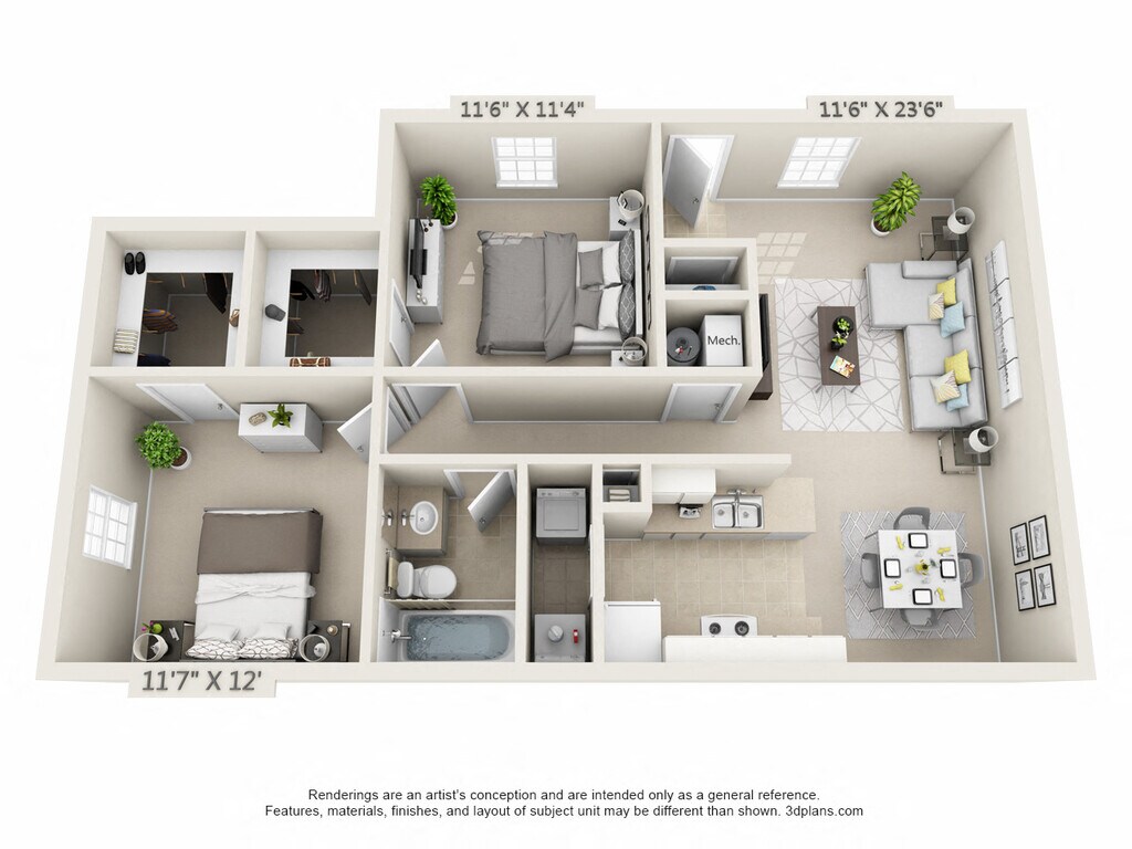 2 Beds, 1 Bath, 890 sq ftAvailable NowModel Gallery
