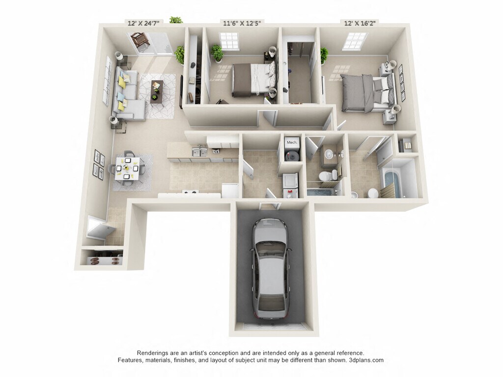 2 Beds, 1 Bath, 1040 sq ftAvailable NowModel Gallery