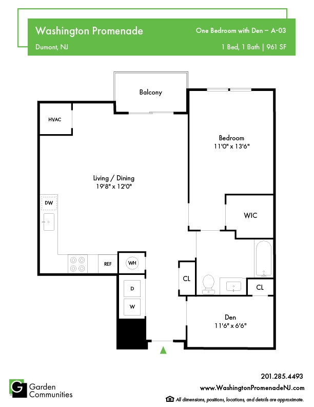 Price Availability Date Unit Sq Ft From $3,185 Call for Availability $3.31/sq.ft. - One Bedroom with Den - A-03 961 sq ft Model Amenities and Features