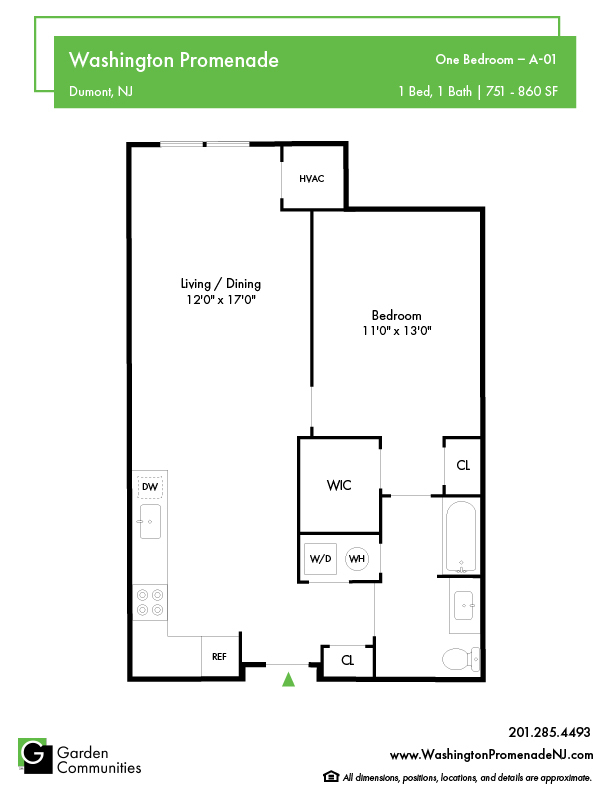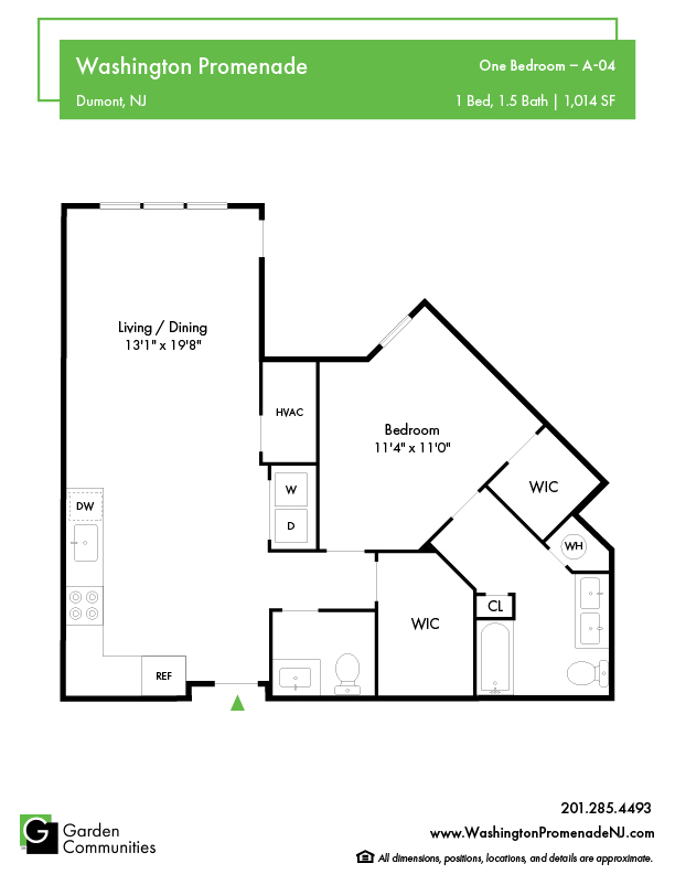 Located in the peaceful suburb of Dumont, Washington Promenade is a luxury apartment community featuring 146 apartments. Washington Promenade offers an array of spacious apartments, with one- or two-bedroom layouts. The community provides an elegant living experience, complete with Caesar stone Quartz countertops, plank wood-style flooring, individual washers and dryers, and available private garages and storage rooms. Our residents enjoy incredible amenities including a stunning pool and clubhouse with vaulted ceilings, fireplace and pool table. Only minutes from Manhattan, and with delicious local restaurants nearby, Washington Promenade is the perfect community to call home. Don't miss out on our spacious apartments, provide the perfect space for a home office or children's play area.