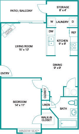 Apartment Model: Adams$1,4091 Bedroom, 1 Bath, 680 sq ftAvailable Now![]()
