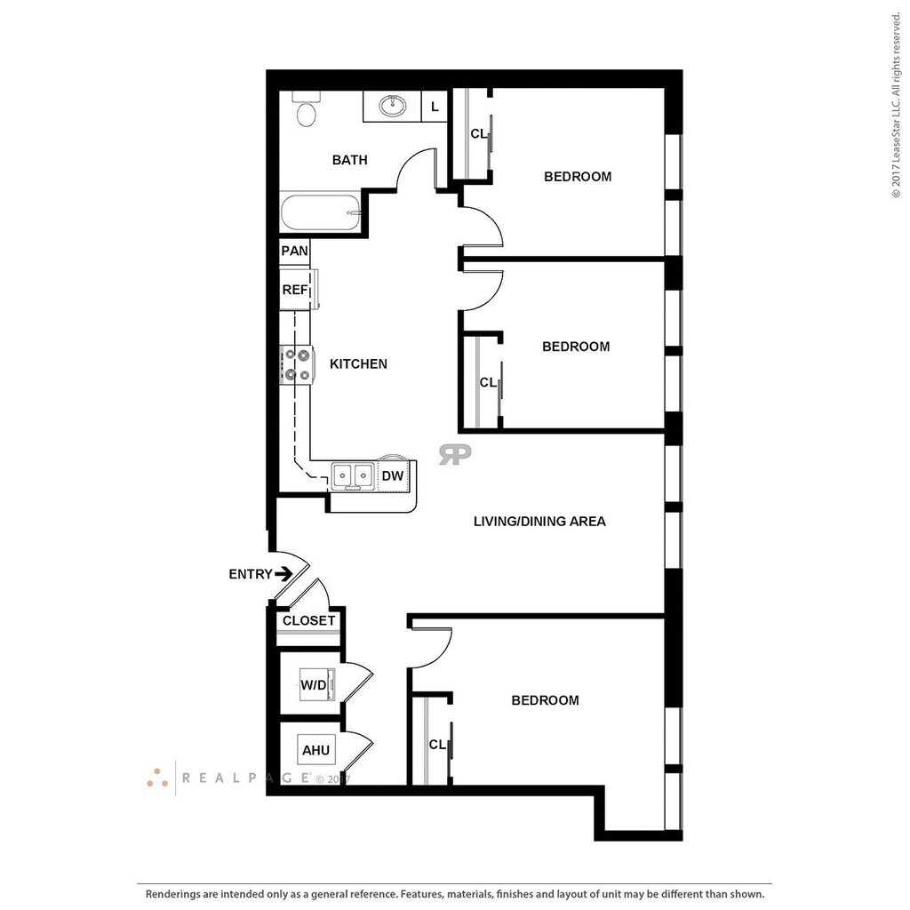 2 Bedroom 1 Bath - Floorplan 3 3 Bedrooms